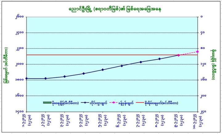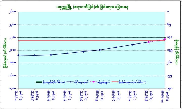 ယနေ့မြန်မာစံတော်ချိန် (၁၂:၃၀) နာရီအချိန် တိုင်းထွာချက်အရ ဧရာဝတီမြစ်ရေသည် ပခုက္ကူမြို့တွင် ယင်းမြို့၏စိုးရိမ်ရေမှတ်အောက် ၁ ပေခန့် (၂၄ စင်တီမီတာ) တွင် ရောက်ရှိနေပါသည်။ အဆိုပါမြစ်ရေသည် နောက် ၁၂ နာရီအတွင်း ယင်းမြို့၏စိုးရိမ်ရေမှတ်သို့ ရောက်ရှိနိုင်ပါသည်။