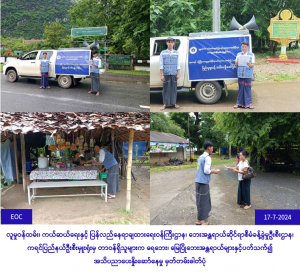 လူမှုဝန်ထမ်း၊ ကယ်ဆယ်ရေးနှင့် ပြန်လည်နေရာချထားရေးဝန်ကြီးဌာန၊ ဘေးအန္တရာယ်ဆိုင်ရာစီမံခန့်ခွဲမှုဦးစီးဌာန၊ ကရင်ပြည်နယ်ဦးစီးမှူးရုံးမှ တာဝန်ရှိသူများသည် (၁၇-၇-၂၀၂၄)ရက်နေ့နှင့် (၁၈-၇-၂၀၂၄)ရက်နေ့တို့တွင် ဘားအံမြို့နယ်အတွင်းရှိ စုစုပေါင်းကျေးရွာ (၉) ရွာ၊ ရပ်ကွက် (၁) ရပ်ကွက်နှင့် စျေး (၂) စျေး တို့၌ ရေဘေးနှင့် မြေပြိုဘေးအန္တရာယ်များနှင့်ပတ်သက်၍ ဆောင်ရန်/ ရှောင်ရန်အချက်များအား ပြည်သူ များသိရှိနိုင်စေရန် လိုက်လံလှည့်လည်နှိုးဆော်ခြင်းနှင့် လက်ကမ်းစာစောင်များဝေငှခြင်းတို့အား ဆောင်ရွက်ခဲ့ပါကြောင်း သတင်းရရှိပါသည်။