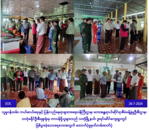 လူမှုဝန်ထမ်း၊ ကယ်ဆယ်ရေးနှင့် ပြန်လည်နေရာချထားရေးဝန်ကြီးဌာန၊ ဘေးအန္တရာယ်ဆိုင်ရာစီမံခန့်ခွဲမှုဦးစီးဌာန သထုံခရိုင်ဦးစီးမှူးရုံးမှ တာဝန်ရှိသူများသည် (၂၄-၇-၂၀၂၄) ရက်နေ့ (၁၆:၂၀) နာရီအချိန်တွင် သထုံ မြို့နယ်၊ ဒူးရင်းဆိပ်ကျေးရွာတွင် ဒုံသမိမြစ်ရေမြင့်တက်လာမှုကြောင့် ရွာလယ်ဓမ္မာရုံနှင့် တပ်ဦးဘုန်းကြီး ကျောင်းကယ်ဆယ်ရေးစခန်းတို့ရှိ အိမ်ထောင်စု (၄၄) စုရှိ လူဦးရေ (၁၉၆) ဦးတို့အတွက် (၇) ရက်စာ ဆန် ရိက္ခာဖိုးထောက်ပံ့ငွေ (၄၁၁,၆၀ဝိ/-) အား (၂၆-၇-၂၀၂၄)ရက်နေ့ (၁၀:၃၀) နာရီအချိန်တွင် ခရိုင်/ မြို့နယ် ဘာဝဘေးအန္တရာယ်ဆိုင်ရာစီမံခန့်ခွဲမှုအဖွဲ့ဥက္ကဋ္ဌနှင့် အဖွဲ့ဝင်များ၊ ဌာနဆိုင်ရာများနှင့်အတူ ရေဘေးသင့် ပြည်သူများထံသို့ လက်ဝယ်အရောက် ထောက်ပံ့ပေးအပ်ခဲ့ပါကြောင်း သတင်းရရှိပါသည်။