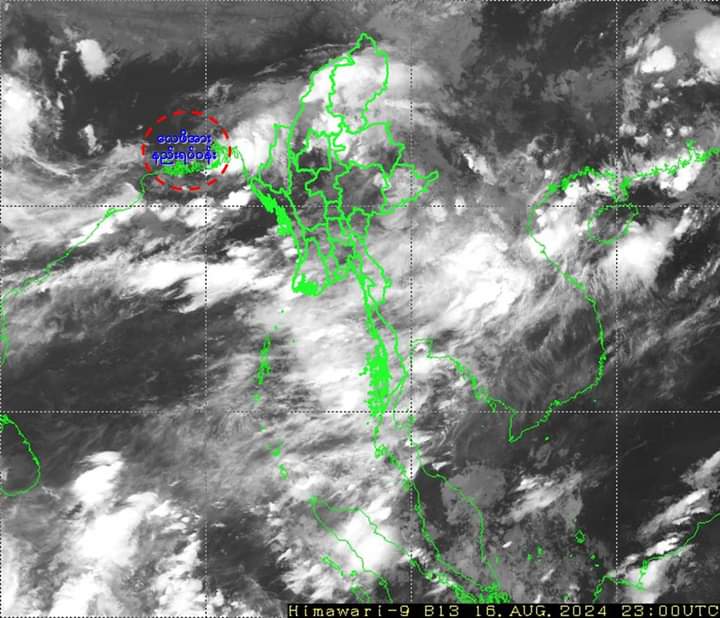 ၂၀၂၄ ခုနှစ်၊ ဩဂုတ်လ (၁၇) ရက်နေ့ မြန်မာစံတော်ချိန် (၀၇:၀၀) နာရီအချိန်တွင် မိုးလေဝသနှင့် ဇလဗေဒညွှန်ကြားမှုဦးစီးဌာနမှ “လေဖိအားနည်းရပ်ဝန်းအခြေအနေ” ကို အောက်ပါအတိုင်း ထုတ်ပြန်ထားပါသည်-