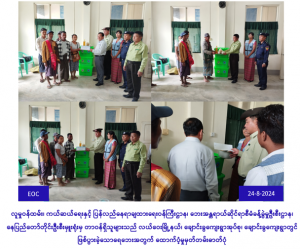 လူမှုဝန်ထမ်း၊ ကယ်ဆယ်ရေးနှင့် ပြန်လည်နေရာချထားရေးဝန်ကြီးဌာန၊ ဘေးအန္တရာယ်ဆိုင်ရာစီမံခန့်ခွဲမှုဦးစီးဌာန၊ နေပြည်တော်တိုင်းဦးစီးမှူးရုံးမှ တာဝန်ရှိသူများသည် ပြည်ထောင်စုနယ်မြေ၊ နေပြည်တော်၊ လယ်ဝေးခရိုင်၊ လယ်ဝေးမြို့နယ်၊ ချောင်းခွကျေးရွာအုပ်စု၊ ချောင်းခွကျေးရွာ၌ (၂၂-၈-၂၀၂၄) ရက်နေ့၊ (၂၂:၀၀) နာရီအချိန်တွင်ဖြစ်ပွားခဲ့သော ရေဘေးကြောင့် မျောပါနေအိမ် (၃) လုံးနှင့် ဖျက်သိမ်းပြောင်းရွှေ့ခဲ့ရသည့် နေအိမ် (၂) လုံးအတွက် ကယ်ဆယ်ရေးပစ္စည်း (၁၆) မျိုးပါ (၃) ပုံး၊ အိမ်ဆောက်ပစ္စည်းဖိုးထောက်ပံ့ငွေ (၅၀၀,၀၀ဝိ/-)၊ ဘေးသင့်လူဦးရေ (၁၈)ဦးအတွက် ဆန်ရိက္ခာဖိုးထောက်ပံ့ငွေ (၃၇,၈၀ဝိ/-)၊ စုစုပေါင်းထောက်ပံ့ငွေ (၅၃၇,၈၀၀ိ/-) တို့အား (၂၄-၈-၂၀၂၄) ရက်နေ့၊ (၀၉:၃၀) အချိန်တွင် နေပြည်တော်ကောင်စီဝင် ဦးမြင့်စိုး၊ ခရိုင်အုပ်ချုပ်ရေးမှူး၊ မြို့နယ်အုပ်ချုပ်ရေးမှူးများနှင့်အတူ ဘေးသင့်ပြည်သူများလက်ဝယ်သို့ သွားရောက်ထောက်ပံ့ပေးအပ်ခဲ့ကြောင်း သတင်းရရှိပါသည်။