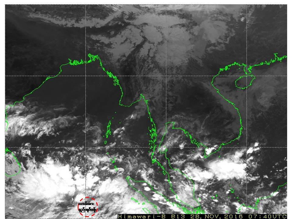 ၁။ ၂၀၁၆ ခုနှစ်၊ နိုဝင်ဘာလ (၂၈)ရက်နေ့၊ မြန်မာစံတော်ချိန် (၁၅:ဝ၀)နာရီအချိန်တွင် မိုးလေဝသ နှင့် ဇလဗေဒညွှန်ကြားမှုဦးစီးဌာနမှ ထုတ်ပြန်သည့် အချိန်အခါမဟုတ် မိုးရွာနိုင်မည့် သတိပေးချက်