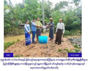 လူမှုဝန်ထမ်း၊ ကယ်ဆယ်ရေးနှင့် ပြန်လည်နေရာချထားရေးဝန်ကြီးဌာန၊ ဘေးအန္တရာယ်ဆိုင်ရာစီမံခန့်ခွဲမှု ဦးစီးဌာန၊ ပြည်ခရိုင်ဦးစီးမှူးရုံးမှ တာဝန်ရှိသူများသည် (၁၂-၉-၂၀၂၄) ရက်နေ့တွင် ရွှေတောင်မြို့နယ်၊ မင်းကွန်းအုပ်စု၊ လက်ခုပ်ကုန်းကျေးရွာ၌ တောင်ကျရေကြောင့် ကုက္ကိုလ်ပင်လဲကျပြီး ပြိုကျပျက်စီးခဲ့သောနေအိမ်တစ်လုံးအတွက် အိမိဆောက်ပစ္စည်းဖိုးထောက်ပံ့ငွေ (၁,၀၀,၀၀၀ိ/-) လူဦးရေ (၆) ဦး အတွက် ဆန်ရိက္ခာဖိုးထောက်ပံ့ငွေ (၁၂,၆၀၀ိ/-) နှင့် ကယ်ဆယ်ရေးပစ္စည်း (၁၆) မျိုးတစ်စုစာတို့အား (၁၃-၉-၂၀၂၄) ရက်နေ့၊ (၁၂:၁၅) အချိန်တွင် ဘေးသင့်ပြည်သူများ၏ လက်ဝယ်အရောက် ထောက်ပံ့ပေးအပ်ခဲ့ကြောင်း သတင်းရရှိပါသည်။