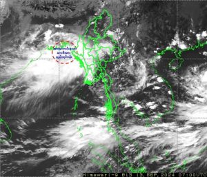 ၂၀၂၄ ခုနှစ်၊ စက်တင်ဘာလ ၁၃ ရက်နေ့ မြန်မာစံတော်ချိန် (၁၄:၀၀)နာရီအချိန်တွင် မိုးလေဝသနှင့် ဇလဗေဒညွှန်ကြားမှုဦးစီးဌာနမှ “လေဖိအားနည်းရပ်ဝန်းအခြေအနေ” ကို အောက်ပါအတိုင်း ထုတ်ပြန်ထားပါသည်-