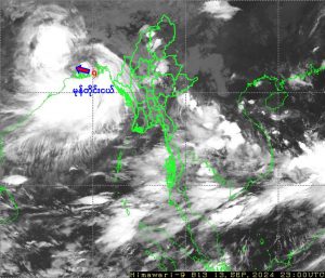 ၂၀၂၄ ခုနှစ်၊ စက်တင်ဘာလ (၁၄) ရက်နေ့ မြန်မာစံတော်ချိန် (၀၇:၀၀) နာရီအချိန်တွင် မိုးလေဝသနှင့် ဇလဗေဒညွှန်ကြားမှုဦးစီးဌာနမှ “မုန်တိုင်းငယ်(Depression)သတင်း” ကို အောက်ပါအတိုင်း ထုတ်ပြန်ထား ပါသည်-