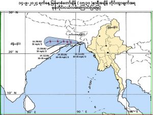 ယနေ့မြန်မာစံတော်ချိန် (၀၅:၃၀)နာရီအချိန် တိုင်းထွာချက်များအရ ဘင်္ဂလားပင်လယ်အော် အရှေ့မြောက်ပိုင်းနှင့် ယင်းနှင့်ဆက်စပ်လျက်ရှိသော ဘင်္ဂလားဒေ့ရှ်နိုင်ငံအရှေ့တောင်ပိုင်း ကမ်းခြေတို့တွင် ဖြစ်ပေါ်ခဲ့သော မုန်တိုင်းငယ်(Depression)သည် အနောက်-အနောက် မြောက်ဘက်သို့ ရွေ့လျားခဲ့ပြီး၊ ဘင်္ဂလားဒေ့ရှ်နိုင်ငံကမ်းခြေကို ပတ်တု(အ)ခါလီမြို့ အနီးမှ ဖြတ်ကျော်ခဲ့ပြီး ဖြစ်ပါသည်။