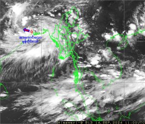 ၂၀၂၄ ခုနှစ်၊ စက်တင်ဘာလ (၁၄) ရက်နေ့ မြန်မာစံတော်ချိန် (၁၉:၀၀) နာရီအချိန်တွင် မိုးလေဝသနှင့် ဇလဗေဒညွှန်ကြားမှုဦးစီးဌာနမှ “အားကောင်းသောမုန်တိုင်းငယ် (Deep Depression) သတင်း” ကို အောက်ပါအတိုင်း ထုတ်ပြန်ထားပါသည်-