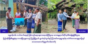 လူမှုဝန်ထမ်း၊ ကယ်ဆယ်ရေးနှင့် ပြန်လည်နေရာချထားရေးဝန်ကြီးဌာန၊ ဘေးအန္တရာယ်ဆိုင်ရာစီမံခန့်ခွဲမှုဦးစီးဌာန၊ ပြည်ခရိုင်ဦးစီးမှူးရုံးမှ တာဝန်ရှိသူများသည် (၁၇-၉-၂၀၂၄) ရက်နေ့ မိုးသည်းထန်စွာရွာသွန်းပြီး လေပြင်းတိုက်ခတ်မှုကြောင့် ပြည်မြို့နယ်၊ ရွာဘဲရပ်ကွက်မှ လေဘေးသင့်ပြိုလဲနေအိမ် (၁) လုံးနှင့် အမိုးလန်နေအိမ် (၂) လုံးအတွက် အိမ်ဆောက်ပစ္စည်းဖိုးထောက်ပံ့ငွေ (၃၀၀,၀၀ဝိ/-) ၊ ကယ်ဆယ်ရေးပစ္စည်း (၁၆) မျိုး အိမ်ထောင် (၁) စုစာ၊ ကြာအင်းကျေးရွာအုပ်စု၊ ပေါက်တောကျေးရွာမှ အမိုးလန်အိမ်ခြေ (၁) လုံးအတွက် အိမ်ဆောက်ပစ္စည်းဖိုးထောက်ပံ့ငွေ (၅၀,၀၀ဝိ/-) စုစုပေါင်းလူဦးရေ (၁၆) ဦးအတွက် ဆန်ရိက္ခာဖိုးထောက်ပံ့ငွေ (၃၃,၆၀ဝိ/-) ၊စုစုပေါင်းထောက်ပံ့ငွေ (၃၈၃,၆၀ဝိ/-) အား (၁၈-၉-၂၀၂၄) ရက်နေ့ (၁၃:၃၀) နာရီအချိန်တွင် ပြည်သူများလက်ဝယ်အရောက် သွားရောက်ထောက်ပံ့ပေးအပ်ခဲ့ကြောင်း သတင်းရရှိပါသည်။