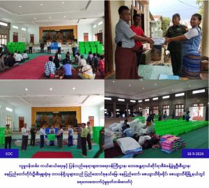 လူမှုဝန်ထမ်း၊ ကယ်ဆယ်ရေးနှင့် ပြန်လည်နေရာချထားရေးဝန်ကြီးဌာန၊ ဘေးအန္တရာယ်ဆိုင်ရာစီမံခန့်ခွဲမှုဦးစီးဌာန၊ နေပြည်တော်ကောင်စီဥက္ကဋ္ဌကြီးနှင့် ကောင်စီဝင် ဗိုလ်မှူးကြီးရဲမိုး၊ ဦးဟန်သူနှင့်အတူ နေပြည်တော်တိုင်းဦးစီးမှူးရုံးမှ တာဝန်ရှိသူများသည် ပြည်ထောင်စုနယ်မြေ၊ နေပြည်တော်၊ ဇေယျာသီရိ ခရိုင်၊ ဇေယျာသီရိမြို့နယ်တွင် (၁၁-၉-၂၀၂၄) ရက်နေ့တွင်ဖြစ်ပွားခဲ့သော ရေဘေးကြောင့် ဘေးသင့်လူဦးရေ (၄,၄၈၈) ဦးအတွက် ဆန်ရိက္ခာဖိုးထောက်ပံ့ငွေ (၉,၄၂၄,၈၀၀/-) အား (၁၈-၉-၂၀၂၄) ရက်နေ့တွင်လည်းကောင်း၊ သေဆုံးလူဦးရေ (၅) ဦးအတွက်ထောက်ပံ့ငွေ (၁,၈၀၀,၀၀၀/-)အား (၁၉-၉-၂၀၂၄) ရက်နေ့တွင်လည်းကောင်း၊ လုံးဝပျက်စီးနေအိမ် (၁၀၆) လုံးအတွက် အိမ်ဆောက်ပစ္စည်းဖိုး ထောက်ပံ့ငွေ (၁၀,၆၀၀,၀၀၀/-) စုစုပေါင်းထောက်ပံ့ငွေ (၂၁,၈၂၄,၈၀၀/-)နှင့် (၁၀၇၆၇၈/-) တန်ဖိုးရှိ ကယ်ဆယ်ရေး ပစ္စည်း (၁၆)မျိုး (၁၀၆) အိမ်ထောင်စုစာ (၁၁,၄၁၃,၈၆၈/-)တို့အား (၂၁-၉-၂၀၂၄) ရက်နေ့၊ (၀၈:၃၀) နာရီအချိန်တွင်လည်းကောင်း ဘေးသင့်ပြည်သူများလက်ဝယ်သို့ သွားရောက်ထောက်ပံ့ပေးအပ်ခဲ့ကြောင်း သတင်းရရှိပါသည်။