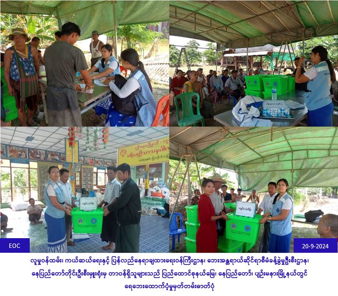 လူမှုဝန်ထမ်း၊ ကယ်ဆယ်ရေးနှင့် ပြန်လည်နေရာချထားရေးဝန်ကြီးဌာန၊ ဘေးအန္တရာယ်ဆိုင်ရာစီမံခန့်ခွဲမှု ဦးစီးဌာန၊ နေပြည်တော်တိုင်းဦးစီးမှူးရုံးမှ တာဝန်ရှိသူများသည် (၁၁-၉-၂၀၂၄) ရက်နေ့တွင် မိုးသည်းထန်စွာရွာသွန်းမှုကြောင့် ပျဥ်းမနားမြို့နယ်အတွင်းရှိ ဘေးသင့်လူဦးရေ (၂,၀၆၆) ဦးအတွက် ဆန်ရိက္ခာဖိုး ထောက်ပံ့ ငွေ (၄,၃၃၈,၆၀၀/-)၊ မျောပါနေအိမ် (၃၀) လုံးအတွက် အိမ်ဆောက်ပစ္စည်းဖိုးထောက်ပံ့ငွေ (၃,၀၀၀,၀၀၀/-)၊ စုစုပေါင်းထောက်ပံ့ငွေ (၇,၃၃၈,၆၀၀/-)တို့အား (၂၀-၉-၂၀၂၄) ရက်နေ့တွင် သက်ဆိုင်ရာတာဝန်ရှိသူများနှင့်အတူ ရေဘေးသင့်ပြည်သူများ လက်ဝယ်သို့သွားရောက် ထောက်ပံ့ပေးအပ်ခဲ့ကြောင်း သတင်းရရှိပါသည်။