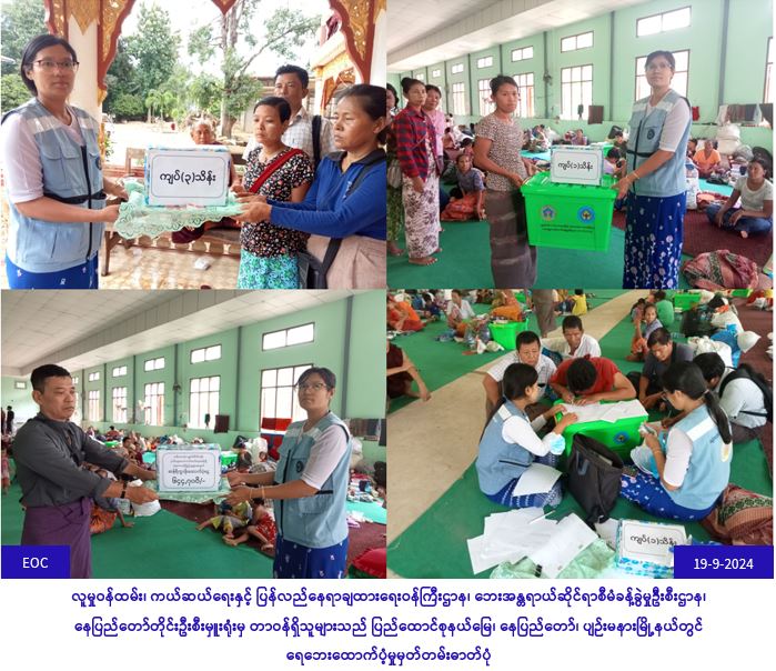လူမှုဝန်ထမ်း၊ ကယ်ဆယ်ရေးနှင့် ပြန်လည်နေရာချထားရေးဝန်ကြီးဌာန၊ ဘေးအန္တရာယ်ဆိုင်ရာစီမံခန့်ခွဲမှု ဦးစီးဌာန၊ နေပြည်တော်တိုင်းဦးစီးမှူးရုံးမှ တာဝန်ရှိသူများသည် (၁၁-၉-၂၀၂၄) ရက်နေ့တွင် မိုးသည်းထန်စွာ ရွာသွန်းမှုကြောင့် ပျဥ်းမနားမြို့နယ်အတွင်း ဘေးသင့်လူဦးရေ (၆,၃၀၅)ဦးအတွကိ ဆန်ရိက္ခာဖိုး ထောက်ပံ့ငွေ (၁၃,၂၄၀,၅၀၀/-)၊ သေဆုံးလူဦးရေ (၆) ဦးအတွက် ထောက်ပံ့ငွေ (၁,၈၀၀,၀၀၀/-) ၊ မျောပါနေအိမ် (၅) လုံးအတွက် အိမ်ဆောက်ပစ္စည်းဖိုးထောက်ပံ့ငွေ (၅၀၀,၀၀၀/-) စုစုပေါင်းထောက်ပံ့ငွေ (၁၅,၅၄၀,၅၀၀/-) တို့အား (၁၉-၉-၂၀၂၄)ရက်နေ့တွင် သက်ဆိုင်ရာ တာဝန်ရှိသူများနှင့်အတူ ရေဘေးသင့်ပြည်သူများ လက်ဝယ်သို့ သွားရောက် ထောက်ပံ့ပေးအပ်ခဲ့ကြောင်း သတင်းရရှိပါသည်။