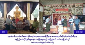 လူမှုဝန်ထမ်း၊ ကယ်ဆယ်ရေးနှင့် ပြန်လည်နေရာချထားရေးဝန်ကြီးဌာန၊ ဘေးအန္တရာယ်ဆိုင်ရာစီမံခန့်ခွဲမှု ဦးစီးဌာန၊ နေပြည်တော်တိုင်းဦးစီးမှူးရုံးမှ တာဝန်ရှိသူများသည် ပြည်ထောင်စုနယ်မြေ၊ နေပြည်တော်၊ လယ်ဝေးမြို့နယ်၌ (၁၁-၉-၂၀၂၄) ရက်နေ့တွင် ဖြစ်ပွားခဲ့သောရေဘေးကြောင့် ဘေးသင့်လူဦးရေ (၅၄၈) ဦး အတွက်ဆန်ရိက္ခာဖိုးထောက်ပံ့ငွေ (၁,၁၅၀,၈၀ဝိ/-) တို့အား နေပြည်တော်ကောင်စီဝင် ဗိုလ်မှူးကြီးရဲမိုး၊ ဦးမြင့်စိုး၊ သက်ဆိုင်ရာတာဝန်ရှိသူများနှင့်အတူ နေပြည်တော်တိုင်းဦးစီးမှူးရုံးမှ တာဝန်ရှိသူ များသည် (၁၈-၉-၂၀၂၄) ရက်နေ့တွင် ဘေးသင့်ပြည်သူများလက်ဝယ်သို့ သွားရောက်ထောက်ပံ့ ပေးအပ်ခဲ့ ကြောင်း သတင်းရရှိပါသည်။