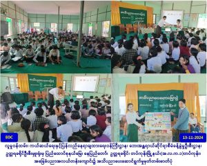 လူမှုဝန်ထမ်း၊ ကယ်ဆယ်ရေးနှင့် ပြန်လည်နေရာချထားရေးဝန်ကြီးဌာန၊ ဘေးအန္တရာယ်ဆိုင်ရာစီမံခန့်ခွဲမှုဦးစီးဌာန၊ ဥတ္တရခရိုင်ဦးစီးမှူးရုံးမှ တာဝန်ရှိသူများသည် (၁၃-၁၁-၂၀၂၄)ရက်နေ့၊ (၁၃:၀၀) မှ (၁၅:၀၀)နာရီအချိန်ထိ ဥတ္တရခရိုင်၊ တပ်ကုန်းမြို့နယ်၊ (အ.လ.က.၁) တပ်ကုန်း၊ အခြေခံပညာအလယ်တန်းကျောင်း၌ အသိပညာပေးဟောပြောပွဲပြုလုပ်ခဲ့ရာ အဆိုပါဟောပြောပွဲ၌ ဌာနဆိုင်ရာများမှ အရာထမ်း/အမှုထမ်းများ၊ ဆရာ/ဆရာမများနှင့် ကျောင်းသား၊ သူ စုစုပေါင်း (၂၀၀)ဦးခန့်အား သဘာဝဘေးနှင့်ပတ်သက်သည့် ဆောင်ရန်/ရှောင်ရန်အချက်များ အသိပညာပေးမျှဝေခဲ့ပြီး လက်ကမ်းစာစောင်ဖြန့်ဝေပေးခြင်းနှင့် နံရံကပ်ပိုစတာပေးအပ်ခြင်းများ ဆောင်ရွက်ခဲ့ကြောင်း သတင်းရရှိပါသည်။