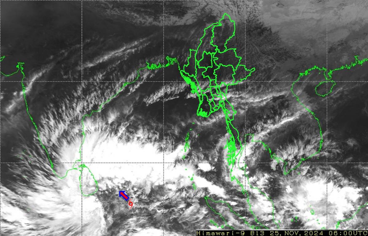 ၂၀၂၄ ခုနှစ်၊ နိုဝင်ဘာလ (၂၅) ရက်နေ့ မြန်မာစံတော်ချိန် (၁၄:၀၀) နာရီအချိန်တွင် မိုးလေဝသနှင့် ဇလဗေဒညွှန်ကြားမှုဦးစီးဌာနမှ “မုန်တိုင်းငယ်သတင်း အမှတ်စဉ်(၀၁/၂၀၂၄)” ကို အောက်ပါအတိုင်း ထုတ်ပြန်ထားပါသည်-