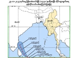 (၁) ယနေ့မြန်မာစံတော်ချိန် (၁၇:၃၀) နာရီအချိန် တိုင်းထွာချက်များအရ ဘင်္ဂလား ပင်လယ်အော်တောင်ပိုင်းတွင် ဖြစ်ပေါ်နေသော မုန်တိုင်းငယ် (Depression) သည် အနောက်-အနောက်မြောက်ဘက်သို့ရွေ့လျားခဲ့ပြီး၊ ဘင်္ဂလားပင်လယ်အော်အနောက် တောင်ပိုင်းသို့ ရောက်ရှိခဲ့ကာ၊ မြန်မာနိုင်ငံ၊ ကိုကိုးကျွန်းမြို့ (Coco Island) ၏ အနောက် တောင်ဘက် ရေမိုင် ၇၅၀ မိုင်ခန့်၊ အိန္ဒိယနိုင်ငံ၊ ချင်းနိုင်မြို့ (Chennai) ၏ တောင်- အရှေ့တောင်ဘက် ရေမိုင် ၅၄၀ မိုင်ခန့်အကွာ ပင်လယ်ပြင်ကို ဗဟိုပြုနေပါသည်။ ဗဟိုချက်လေဖိအား ၁၀၀၄ ဟက်တိုပါစကယ်နှင့် အမြင့်ဆုံးလေတိုက်နှုန်းမှာ တစ်နာရီ လျှင် မိုင် ၃၀ မှ ၃၅ မိုင်နှုန်းခန့် ဖြစ်ပါသည်။