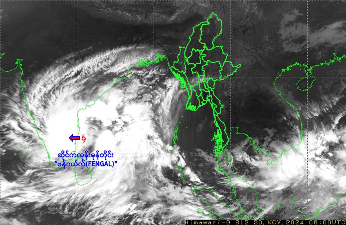 ၂၀၂၄ ခုနှစ်၊ နိုဝင်ဘာလ (၃၀) ရက်နေ့ မြန်မာစံတော်ချိန် (၁၄:၀၀) နာရီအချိန်တွင် မိုးလေဝသနှင့် ဇလဗေဒညွှန်ကြားမှုဦးစီးဌာနမှ “ဆိုင်ကလုန်းမုန်တိုင်း“ဖန်ဂယ်လ်” (FENGAL) သတင်းအမှတ်စဉ် (၁၆/၂၀၂၄)” ကို အောက်ပါအတိုင်း ထုတ်ပြန်ထားပါသည်-