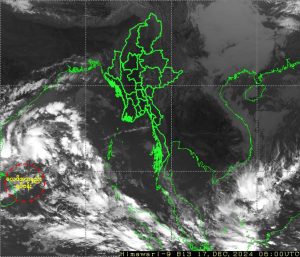 ၂၀၂၄ ခုနှစ်၊ ဒီဇင်ဘာလ (၁၇) ရက်နေ့ မြန်မာစံတော်ချိန် (၁၄:၀၀) နာရီအချိန်တွင် မိုးလေဝသနှင့် ဇလဗေဒညွှန်ကြားမှုဦးစီးဌာနမှ “လေဖိအားနည်းရပ်ဝန်းအခြေအနေ” ကို အောက်ပါအတိုင်း ထုတ်ပြန် ထားပါသည်-