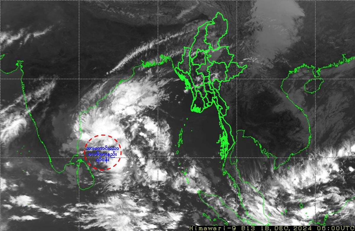 ၂၀၂၄ ခုနှစ်၊ ဒီဇင်ဘာလ (၁၈) ရက်နေ့ မြန်မာစံတော်ချိန် (၁၄:၀၀) နာရီအချိန်တွင် မိုးလေဝသ နှင့် ဇလဗေဒညွှန်ကြားမှုဦးစီးဌာနမှ “အားကောင်းသောလေဖိအားနည်းရပ်ဝန်းအခြေအနေ” ကို အောက်ပါအတိုင်း ထုတ်ပြန်ထားပါသည်-