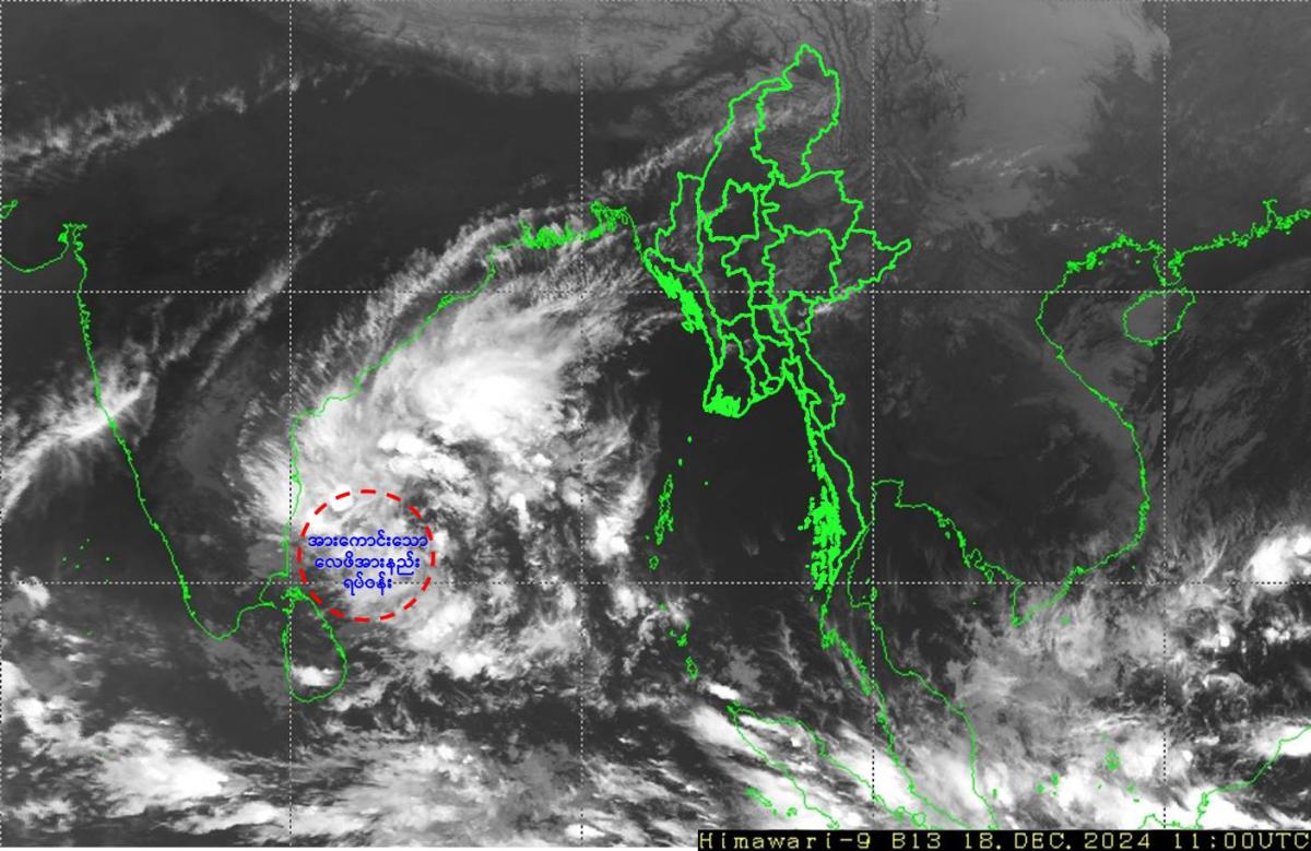 ၂၀၂၄ ခုနှစ်၊ ဒီဇင်ဘာလ (၁၈) ရက်နေ့ မြန်မာစံတော်ချိန် (၁၉:၀၀) နာရီအချိန်တွင် မိုးလေဝသ နှင့် ဇလဗေဒညွှန်ကြားမှုဦးစီးဌာနမှ “အားကောင်းသောလေဖိအားနည်းရပ်ဝန်းအခြေအနေ” ကို အောက်ပါအတိုင်း ထုတ်ပြန်ထားပါသည်-