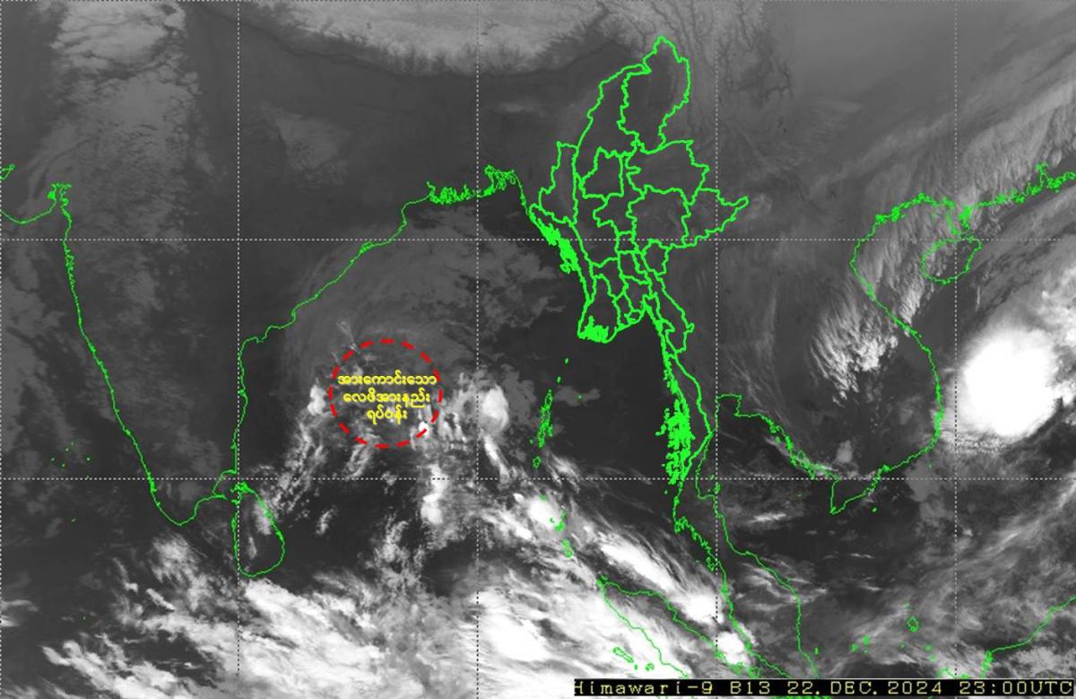၂၀၂၄ ခုနှစ်၊ ဒီဇင်ဘာလ (၂၃) ရက်နေ့ မြန်မာစံတော်ချိန် (၀၇:၀၀) နာရီအချိန်တွင် မိုးလေဝသ နှင့် ဇလဗေဒညွှန်ကြားမှုဦးစီးဌာနမှ “အားကောင်းသောလေဖိအားနည်းရပ်ဝန်းအခြေအနေ” ကို အောက်ပါအတိုင်း ထုတ်ပြန်ထားပါသည်-