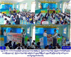 လူမှုဝန်ထမ်း၊ ကယ်ဆယ်ရေးနှင့် ပြန်လည်နေရာချထားရေးဝန်ကြီးဌာန၊ ဘေးအန္တရာယ်ဆိုင်ရာစီမံခန့်ခွဲမှုဦးစီးဌာန၊ ပြည်ထောင်စု နယ်မြေ၊ နေပြည်တော်တိုင်းဦးစီးမှူးရုံးမှ တာဝန်ရှိသူများသည် (၂၆-၁၂-၂၀၂၄) ရက်နေ့၊ နံနက် (၁၀:၀၀)အချိန်တွင် ဥတ္တရသီရိ မြို့နယ်၊ ဥတ္တရသီရိမူကြိုကျောင်းတွင် မူကြို ကျောင်းသား/သူ (၈၀)ဦး အား သဘာဝဘေးနှင့်ပတ်သက်သည့် အသိပညာပေးဟောပြောခဲ့ပြီး နံရံကပ်ပိုစတာနှင့် ဗီနိုင်းပိုစတာများ ဖြန့်ဝေပေးခဲ့ပါကြောင်း သတင်းရရှိပါသည်။