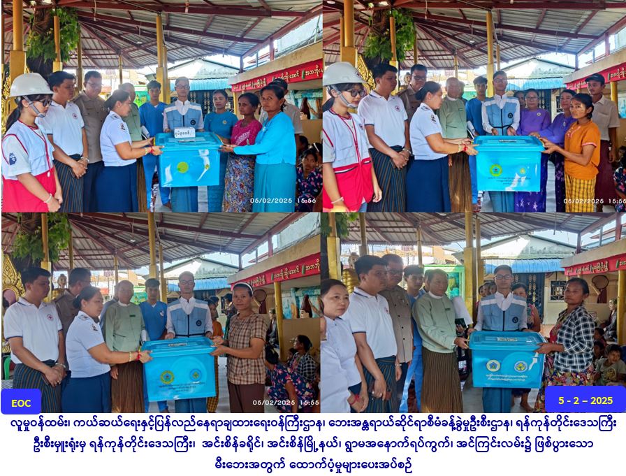 လူမှု၀န်ထမ်း၊ ကယ်ဆယ်ရေးနှင့်ပြန်လည်နေရာချထားရေး၀န်ကြီးဌာန၊ ဘေးအန္တရာယ်ဆိုင်ရာစီမံခန့်ခွဲမှုဦးစီးဌာန၊ ရန်ကုန်တိုင်းဒေသကြီးဦးစီးမှူးရုံးမှ တာဝန်ရှိသူများသည် (၂-၂-၂၀၂၅) ရက်နေ့ အင်းစိန်ခရိုင်၊ အင်းစိန်မြို့နယ်၊ ရွာမအနောက်ရပ်ကွက်၊ အင်ကြင်းလမ်း၌ ဖြစ်ပွားသော မီးလောင်မှုကြောင့် အိမ်ခြေ (၇) လုံး (လုံး၀ပျက်စီး)၊ အိမ်ထောင်စု (၇)စု၊ လူဦးရေ (၃၀) ဦးတို့အတွက် ဆန်ရိက္ခာဖိုးထောက်ပံ့ငွေ ကျပ် (၆,၃၀၀၀ိ/-)၊ အိမ်ဆောက်ပစ္စည်းဖိုး ထောက်ပံ့ငွေကျပ် (၇၀၀၀၀ဝိ/-) နှင့် ကယ်ဆယ်ရေးပစ္စည်းတန်ဖိုး ကျပ်(၁၀၃၃၁၁၆/-)တို့အား (၅-၂-၂၀၂၅) ရက်နေ့ (၁၅:၅၅) နာရီအချိန်တွင် ဘေးသင့်ပြည်သူများလက်ဝယ် အရောက် ထောက်ပံ့ပေးအပ်ခဲ့ပါကြောင်း သတင်းရရှိပါသည်။