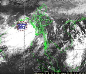 ၂၀၂၅ ခုနှစ်၊ မေလ (၂၈) ရက်နေ့ မြန်မာစံတော်ချိန် (၁၁:၀၀) နာရီအချိန်တွင် မိုးလေဝသနှင့် ဇလဗေဒညွှန်ကြားမှုဦးစီးဌာနမှ “အားကောင်းသော လေဖိအားနည်းရပ်ဝန်းအခြေအနေ” ကို အောက်ပါအတိုင်း ထုတ်ပြန်ထားပါသည်-