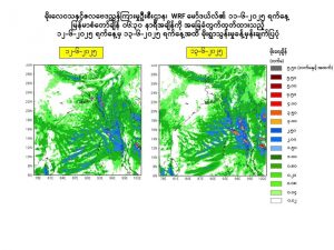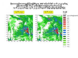 ၂။ သို့ဖြစ်ပါ၍ မိုးသည်းထန်စွာရွာသွန်းခြင်းနှင့်အတူ လေပြင်းတိုက်ခတ်ခြင်း၊ မိုးထစ်ချုန်းခြင်း၊ မိုးကြိုးပစ်ခြင်း၊ လျှပ်စီးလက်ခြင်း၊ မိုးသီးကြွေခြင်း၊ လျှပ်တစ်ပြက်ရေကြီးခြင်းနှင့် မြေပြိုခြင်းစသည့် သဘာဝဘေးအန္တရာယ်များ ဖြစ်ပေါ်နိုင်ပါသဖြင့် အဆိုပါဒေသများရှိ ကုန်းမြင့်ဒေသအနီးတွင် နေထိုင် ကြသူများအနေဖြင့် မြေပြိုမှုအန္တရာယ်၊ မြစ်ငယ်၊ ချောင်းငယ်များအနီးတွင် နေထိုင်ကြသူများအနေဖြင့် ရေကြီး၊ ရေလျှံမှုများကို ကြိုတင်သတိပြုရှောင်ရှားနိုင်ပါရန်နှင့် ပြည်တွင်းရေကြောင်းသွားလာရေးနှင့် လေကြောင်းပျံသန်းရေးအနေဖြင့်လည်း ကြိုတင်သတိပြုနိုင်ပါရန် သတိပေးနှိုးဆော်အပ်ပါသည်။