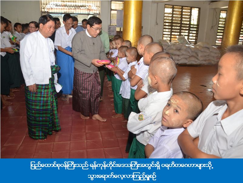 လူမှုဝန်ထမ်း၊ ကယ်ဆယ်ရေးနှင့် ပြန်လည်နေရာချထားရေးဝန်ကြီးဌာန၊ ခဲ့ရာ ယနေ့မြင် တွေ့ရသောကျောင်းသားလူငယ်အများစုမှာ နယ်စပ်ဒေသမှ တိုင်းရင်းသားများအများစုဖြစ်ကြပြီး ကချင်လူမျိုး၊ ရှမ်းလူမျိုး၊ ပလောင်လူမျိုးနှင့် ပအိုဝ့်လူမျိုးကလေးငယ်များဖြစ်ကြကြောင်း၊ ဆယ်ကျော်သက်အရွယ်ကလေးများကို ယခုအချိန်မှလုပ်ငန်းခွင်ဝင်ရောက်နိုင်သည်အထိ ကျောင်းတွင်းနှင့် ကျောင်းပြင်ပ ပညာရေးများ သင်ကြားပေးသည့်နည်းတူ အသက်မွေးဝမ်းကျောင်းပညာရပ်ကို ဦးတည်သင်ကြားပေးစေလိုကြောင်း၊ အုပ်ထိန်းသူများကလည်း မိဘသဖွယ်မေတ္တာဖြင့် ပြုစုထိန်းကျောင်းပေးကြရမည်ဖြစ်ကြောင်း၊ နိုင်ငံတော်အစိုးရအနေဖြင့် ပရဟိတလုပ်ငန်းကို အသိအမှတ်ပြုအားပေးထောက်ပံ့လျက်ရှိပြီး မိမိတို့ဝန်ကြီးဌာနအနေဖြင့် ပရဟိတကျောင်းများကို အဆင့်အလိုက် နှစ်စဉ်ထောက်ပံ့ကြေးများ၊ ဆန်နှင့်အဝတ်အထည်များ ထောက်ပံ့ပေးလျက်ရှိပါကြောင်း ပြောကြားပြီး ကလေးငယ်များအတွက် ဆေးပဒေသာပင် ထောက်ပံ့လှူဒါန်းငွေပေးအပ်ခြင်း၊ မုန့်နှင့် ကစားစရာပစ္စည်းများကို ထောက်ပံ့ပေးအပ်ခဲ့ပါသည်။