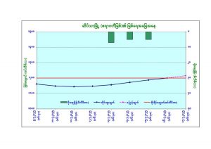 ယနေ့မြန်မာစံတော်ချိန် ၀၆:၃၀ နာရီအချိန် တိုင်းထွာချက်အရ ဧရာဝတီမြစ်ရေသည် ညောင်ဦး မြို့တွင် ယင်းမြို့၏ စိုးရိမ်ရေမှတ်အထက်သို့ ၁ စင်တီမီတာခန့် ရောက်ရှိနေပြီး နောက် ၁ ရက်အတွင်း စိုးရိမ်ရေမှတ်အောက်သို့ ပြန်လည်ကျဆင်းနိုင်ပါသည်။