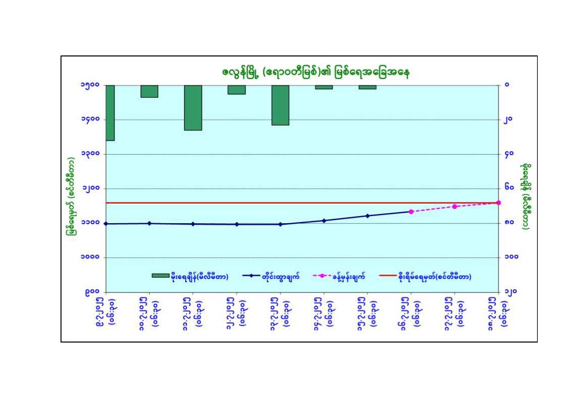 ယနေ့မြန်မာစံတော်ချိန် ၀၆:၃၀ နာရီအချိန် တိုင်းထွာချက်အရ ဧရာဝတီမြစ်ရေသည် ဇလွန်မြို့တွင် ယင်းမြို့၏ စိုးရိမ်ရေမှတ်အောက် ၁ ပေခန့်တွင် ရောက်ရှိနေပါသည်။ အဆိုပါမြစ်ရေသည် နောက် ၂ ရက်အတွင်း ယင်းမြို့၏ စိုးရိမ်ရေမှတ်သို့ ရောက်ရှိနိုင်ပါသည်။