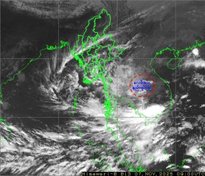 ၂၀၂၅ ခုနှစ်၊ နိုဝင်ဘာလ ၇ ရက်နေ့ မြန်မာစံတော်ချိန် (၁၆:၀၀) နာရီအချိန်တွင် မိုးလေဝသနှင့် ဇလဗေဒညွှန်ကြားမှုဦးစီးဌာနမှ “လေဖိအားနည်းရပ်ဝန်းအခြေအနေသတင်း အမှတ်စဉ် (၇/၂၀၂၅)” ကို အောက်ပါအတိုင်း ထုတ်ပြန်ထားပါသည်-