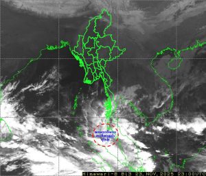 ၂၀၂၅ ခုနှစ်၊ နိုဝင်ဘာလ ၂၄ ရက်နေ့ မြန်မာစံတော်ချိန် (၀၇:၀၀) နာရီအချိန်တွင် မိုးလေဝသနှင့် ဇလဗေဒညွှန်ကြားမှုဦးစီးဌာနမှ “အားကောင်းသောလေဖိအားနည်းရပ်ဝန်းအခြေအနေ”ကို အောက်ပါအတိုင်း ထုတ်ပြန်ထားပါသည်-