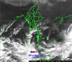၂၀၂၅ ခုနှစ်၊ နိုဝင်ဘာလ ၂၆ ရက်နေ့ မြန်မာစံတော်ချိန် (၁၆:၀၀) နာရီအချိန်တွင် မိုးလေဝသနှင့် ဇလဗေဒညွှန်ကြားမှုဦးစီးဌာနမှ “ဆိုင်ကလုန်းမုန်တိုင်းသတင်း အမှတ်စဉ်(၀၄/၂၀၂၅)”ကို အောက်ပါအတိုင်း ထုတ်ပြန်ထားပါသည်-
