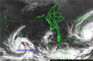 (၁) ယနေ့မြန်မာစံတော်ချိန် ၁၅:၃၀ နာရီအချိန် တိုင်းထွာချက်များအရ ဘင်္ဂလားပင်လယ်အော် အနောက်တောင်ပိုင်းနှင့် ယင်းနှင့်ဆက်စပ်လျက်ရှိသော သီရိလင်္ကာနိုင်ငံကမ်းခြေတို့တွင် ဖြစ်ပေါ်နေသော အားကောင်းသောမုန်တိုင်းငယ် (Deep Depression) သည် မြောက်-အနောက်မြောက်ဘက်သို့ ရွေ့လျားခဲ့ပြီး မြန်မာနိုင်ငံ၊ ကိုကိုးကျွန်းမြို့ (Coco Island) ၏ အနောက်တောင်ဘက် ရေမိုင် ၈၀၀ မိုင်ခန့်၊ သီရိလင်္ကာနိုင်ငံ၊ ထရီကိုမာလီမြို့ (Tricomalee) ၏ တောင်-အရှေ့တောင်ဘက် ရေမိုင် ၁၂၅ မိုင်ခန့်နှင့် အိန္ဒိယနိုင်ငံ၊ ပူဒူချယ်ရီမြို့(Puducherry)၏ တောင်-အရှေ့တောင်ဘက် ရေမိုင် ၃၄၀ မိုင်ခန့်အကွာ ပင်လယ်ပြင်ကို ဗဟိုပြုနေပါသည်။