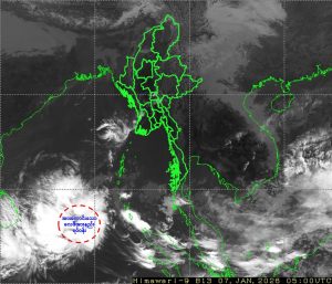 ၂၀၂၆ ခုနှစ်၊ ဇန်နဝါရီလ ၇ ရက်နေ့ မြန်မာစံတော်ချိန် (၁၂:၀၀) နာရီအချိန်တွင် မိုးလေဝသနှင့် ဇလဗေဒညွှန်ကြားမှုဦးစီးဌာနမှ “အားကောင်းသောလေဖိအားနည်းရပ်ဝန်းအခြေအနေသတင်း” ကို အောက်ပါအတိုင်း ထုတ်ပြန်ထားပါသည်-