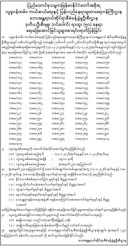 လူမှုဝန်ထမ်း၊ ကယ်ဆယ်ရေးနှင့် ပြန်လည်နေရာချထားရေးဝန်ကြီးဌာန၊ ဘေးအန္တရာယ်ဆိုင်ရာစီမံခန့်ခွဲမှုဦးစီးဌာနမှ ခေါ်ယူထားသော ဒုတိယဦးစီးမှူး(ဝင်ပေါက်) ရာထူး (၅၀)နေရာ ရေးဖြေအောင်မြင်သူများစာရင်း ထုတ်ပြန်ခြင်း