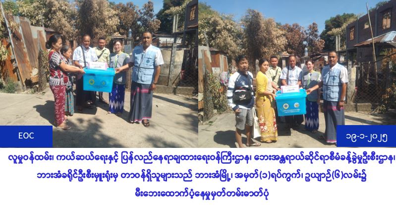 လူမှုဝန်ထမ်း၊ ကယ်ဆယ်ရေးနှင့်ပြန်လည်နေရာချထားရေးဝန်ကြီးဌာန၊ ဘေးအန္တရာယ်ဆိုင်ရာစီမံခန့်ခွဲမှု ဦးစီးဌာန၊ ဘားအံခရိုင်ဦးစီးမှူးရုံးမှ တာဝန်ရှိသူများသည် (၁၄-၁-၂၀၂၆) ရက်နေ့တွင် ဘားအံမြို့၊ အမှတ်(၁)ရပ်ကွက်၊ ဥယျာဉ်(၆)လမ်း၌ မီးလောင်ကျွမ်းမှုကြောင့် လုံးဝပျက်စီးခဲ့သည့်လူနေအိမ် (၃) လုံးအတွက် အိမ်ဆောက်ပစ္စည်းဖိုးထောက်ပံ့ငွေ(၆၀၀၀၀ဝိ/-)၊ ဘေးသင့် လူဦးရေ (၉) ဦးတို့အတွက် (၁) ပတ်စာ ဆန်ရိက္ခာဖိုးထောက်ပံ့ငွေ (၄၅၀၀ဝိ/-)၊ ထောက်ပံ့ငွေ စုစုပေါင်း (၆၄၅၀၀ဝိ/-)နှင့် ကယ်ဆယ်ရေး ပစ္စည်း(၁၆)မျိုး၊ အိမ်ထောင်စု (၃) စုအတွက် ကယ်ဆယ်ရေးပစ္စည်းတန်ဖိုးငွေ (၃၈၈၉၀၄/-) အား (၁၉-၁-၂၀၂၆) ရက်နေ့တွင် ဘေးသင့်ပြည်သူများထံ လက်ဝယ်အရောက်ထောက်ပံ့ပေးခဲ့ပါကြောင်း သတင်းရရှိပါ သည်။
