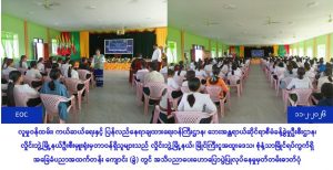လူမှုဝန်ထမ်း၊ ကယ်ဆယ်ရေးနှင့် ပြန်လည်နေရာချထားရေးဝန်ကြီးဌာန၊ ဘေးအန္တရာယ်ဆိုင်ရာစီမံခန့်ခွဲမှု ဦးစီးဌာန၊ လှိုင်းဘွဲ့မြို့နယ်ဦးစီးမှူးရုံးမှတာဝန်ရှိသူများသည် (၁၁-၂-၂၀၂၆) ရက်နေ့၊ (၁၄း၀၀) နာရီအချိန်တွင် လှိုင်းဘွဲ့မြို့နယ်၊ မြိုင်ကြီးငူအထူးဒေသ၊ စုံနံ့သာမြိုင်ရပ်ကွက်ရှိ အခြေခံပညာအထက်တန်း ကျောင်း (ခွဲ) ၌ကျောင်းသား၊ ကျောင်းသူ (၂၅၀) ဦးအား သဘာဝဘေးနှင့်ပတ်သက်၍ ဆောင်ရန်/ ရှောင်အချက်များအား သဘာဝဘေးအသိပညာပေးဟောပြောခြင်းနှင့် လက်ကမ်းစာစောင်များဝေငှခြင်းတို့ ဆောင်ရွက်ခဲ့ကြောင်း သတင်းရရှိပါသည်။