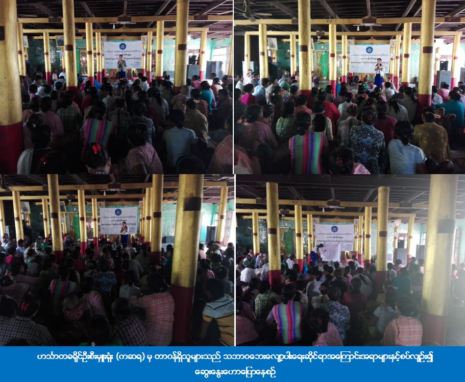 (၂၃-၁၂-၂၀၁၆) ရက်နေ့တွင် ဟင်္သာတခရိုင်ဦးစီးမှူးရုံး (ကဆရ) မှ တာဝန်ရှိသူများသည် ဧရာဝတီတိုင်းဒေသကြီး၊ ဟင်္သာတခရိုင်၊ အင်္ဂပူမြို့နယ်၊ ကျီကြီးကျေးရွာအုပ်စု၊ ကျီကြီးကျေးရွာ၌ သဘာဝဘေးလျော့ပါးရေးအသိပညာပေးဟောပြောဆွေးနွေးပွဲ ကျင်းပပြုလုပ်ခဲ့ရာ ပြည်သူ (၁၄၈) ဦးတက်ရောက်ခဲ့ကြောင်း သိရှိရပါသည်။