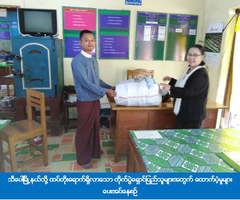 (၂၅-၁၂-၂၀၁၆) ရက်နေ့တွင် ကျောက်မဲခရိုင်ဦးစီးမှူးရုံး (ကဆရ) မှ တာဝန်ရှိသူများသည် သီပေါမြို့နယ်သို့ ထပ်တိုးရောက်ရှိလာသော တိုက်ပွဲရှောင်ပြည်သူ အိမ်ထောင်စု (၄၁) စုမှ လူဦးရေ (၁၉၇) ဦးအတွက် ကယ်ဆယ်ရေးပစ္စည်း (၉) မျိုး အိမ်ထောင်စု (၄၁) စုစာနှင့် ဆန် (၃) ရက်စာဘိုးငွေ (၁၇၇၃၀၀) ကျပ်တိတိအား ထောက်ပံ့ပေးခဲ့ကြောင်း သိရှိရပါသည်။