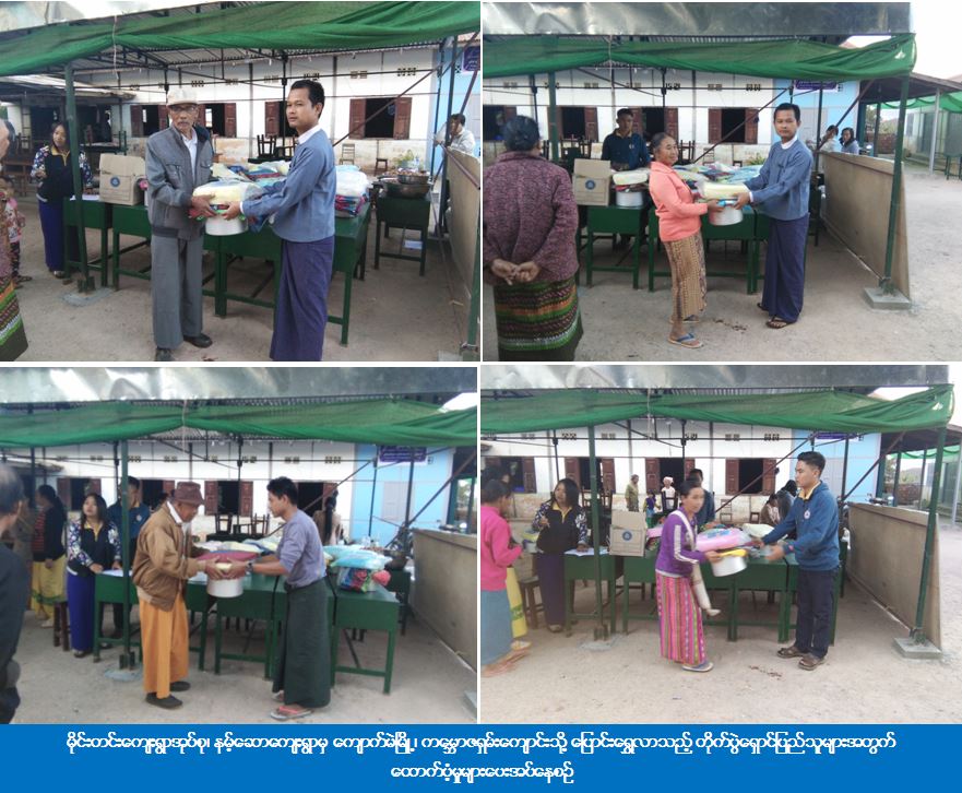 ကျောက်မဲမြို့နယ် မိုင်းတင်းကျေးရွာအုပ်စု နမ့်ဆောကျေးရွာမှ ကျောက်မဲမြို့၊ ကမ္ဘောဇရှမ်းကျောင်းသို့ ပြောင်းရွှေ့လာသည့် တိုက်ပွဲရှောင်ပြည်သူ အိမ်ထောင်စု (၅၁) စုမှ လူဦးရေ (၁၅၇) ဦးအတွက် ကယ်ဆယ်ရေးပစ္စည်း (၉) မျိုး အိမ်ထောင်စု (၅၁) စုစာနှင့် ဆန်၃ရက်စာဘိုးငွေ (၁၄၁၃၀၀) ကျပ်တိတိအား (၁၈-၁၂-၂၀၁၆) ရက်နေ့တွင် ကျောက်မဲခရိုင်ဦးစီးမှူးရုံး (ကဆရ) မှ တာဝန်ရှိသူများက ထောက်ပံ့ခဲ့ကြောင်း သိရှိရပါသည်။