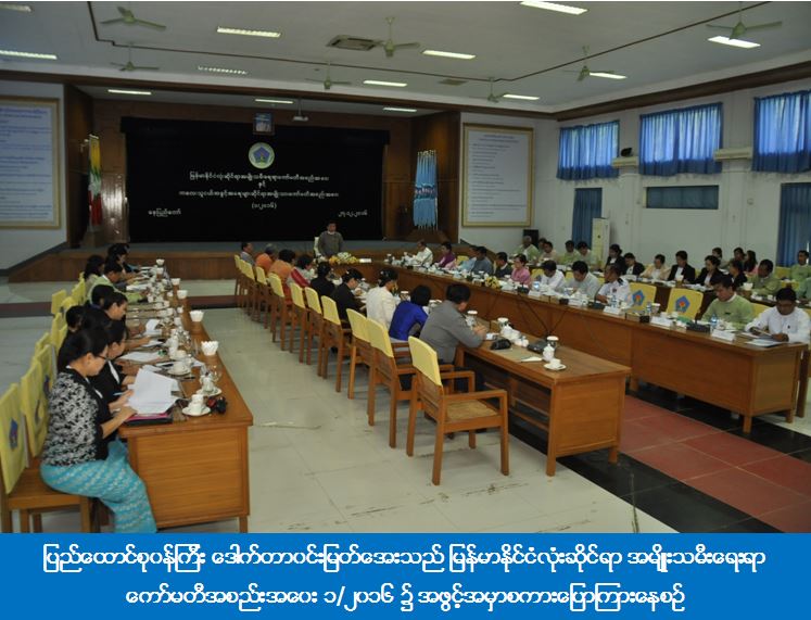 မြန်မာနိုင်ငံလုံးဆိုင်ရာအမျိုးသမီးရေးရာကော်မတီ အစည်းအဝေး ၁/၂၀၁၆ ကို ယနေ့နံနက် ၉နာရီက နေပြည်တော်ရှိ လူမှုဝန်ထမ်း၊ ကယ်ဆယ်ရေးနှင့် ပြန်လည်နေရာ ချထားရေးဝန်ကြီးဌာန၊ အစည်းအဝေးခန်းမ၌ ကျင်းပရာ ကော်မတီဥက္ကဌ၊ ပြည်ထောင်စုဝန်ကြီးက အထက်ပါအတိုင်းပြောကြားခဲ့ခြင်းဖြစ်သည်။