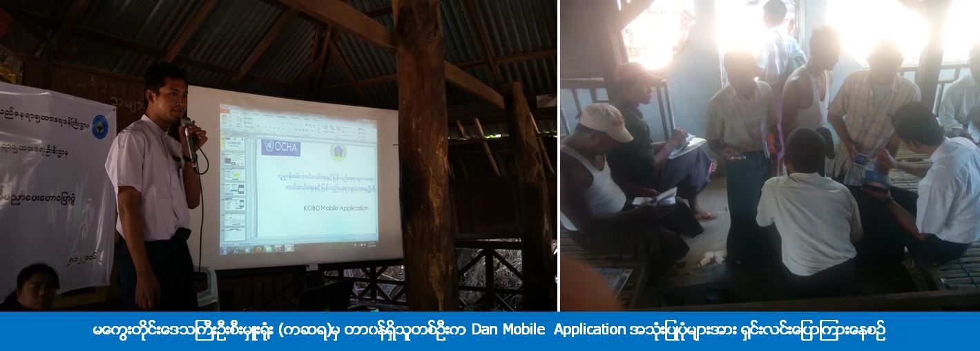 နှင့် မြန်မာနိုင်ငံအတွင်းသဘာဝဘေးလျော့ပါးရေးဆောင်ရွက်ချက်သတင်းများကို အချိန်နှင့်တစ်ပြေးညီပေးပို့ခြင်း၊ ဖြစ်ပေါ်လာနိုင်သည့် ဘေးအန္တရာယ်နှင့်စပ်လျဉ်းသည့် ကြိုတင်သတိပေး Message ပေးပို့သည့်စနစ် အရေးကြီးဖုန်းနံပါတ်နှင့် သဘာဝဘေးပညာပေး လက်ကမ်းစာစောင်များ ထည့်သွင်းထားသော Dan Mobile Application အသုံးပြုပုံများအား ရှင်းလင်းပြောကြားခဲ့ပြီး