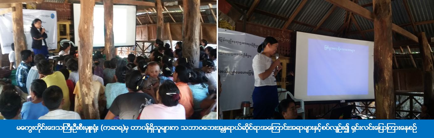 လူမှုဝန်ထမ်း၊ ကယ်ဆယ်ရေးနှင့် ပြန်လည်နေရာချထားရေးဝန်ကြီးဌာန၊ ကယ်ဆယ်ရေးနှင့် ပြန်လည်နေရာချထားရေးဦးစီးဌာန၊ မကွေးတိုင်းဒေသကြီးဦးစီးမှူးရုံးမှ တာဝန်ရှိသူများသည် (၂၈-၁၂-၂၀၁၆) ရက်နေ့တွင် မကွေးမြို့နယ်၊ နတ်ကန်ကျေးရွာအုပ်စု၊ ရွာသစ်ကလေးကျေးရွာ၌ သဘာဝဘေးအန္တရာယ်အသိပညာပေးဟောပြောပွဲ ကျင်းပပြုလုပ်ခဲ့ပြီး လက်ကမ်းစာစောင်များဝေငှခြင်း၊ လူမှုဝန်ထမ်း၊ ကယ်ဆယ်ရေးနှင့် ပြန်လည်နေရာချထားရေးဝန်ကြီးဌာန၊ ပြည်ထောင်စုဝန်ကြီး၏ ရက် (၁၀၀) အလွန် ဆောင်ရွက်မည့်စီမံကိန်းများတွင် တစ်ခုအပါအဝင်ဖြစ်သော သဘာဝဘေးနှင့်စပ်လျဉ်းသည့်သတင်းများ၊ အရေးကြီးသတင်းများ၊ မိုးလေဝသသတင်းများ