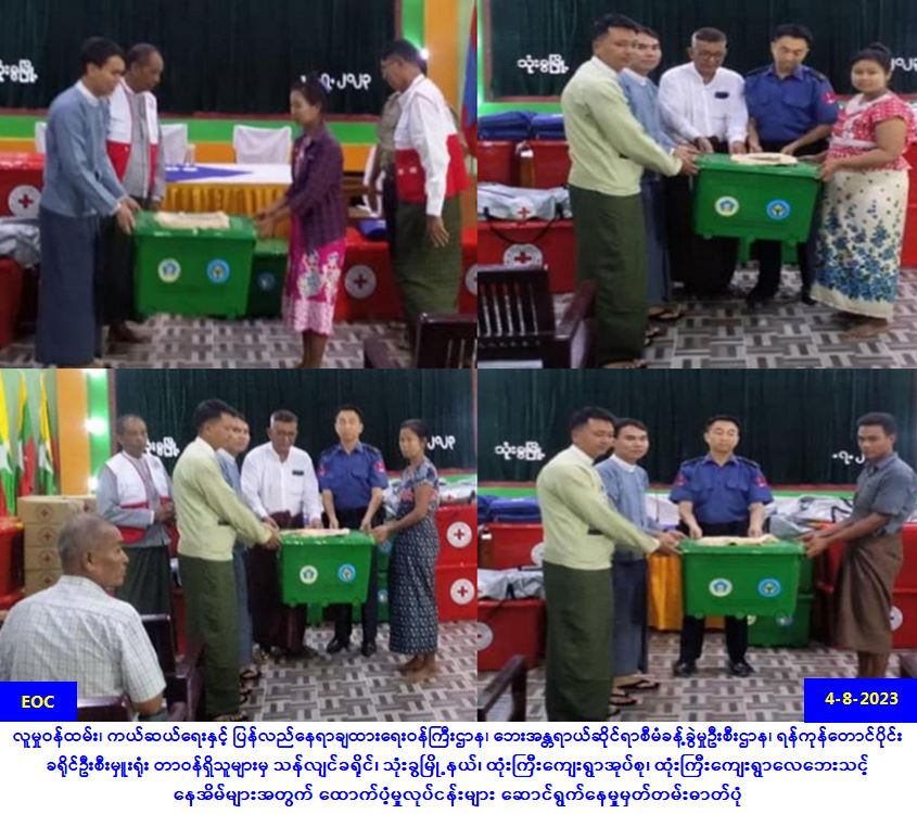 လူမှုဝန်ထမ်း၊ ကယ်ဆယ်ရေးနှင့် ပြန်လည်နေရာချထားရေးဝန်ကြီးဌာန၊ ဘေးအန္တရာယ်ဆိုင်ရာစီမံခန့်ခွဲမှုဦးစီးဌာန သထုံခရိုင်ဦးစီးမှူးရုံးမှ တာဝန်ရှိသူများသည် (၃-၈-၂၀၂၃) ရက်နေ့ (၁၅း၃၀)တွင် မိုးသည်းထည်စွာရွာသွန်း၍ ဒုံသမိချောင်းရေ (၉)ပေမြှင့်တက်မှုကြောင့် မြေနိမ့်ပိုင်းလူနေအိမ်များသို့ ရေ (၄)ပေခန့် ချောင်းရေများဝင်ရောက်လာ၍ မွန်ပြည်နယ် သထုံခရိုင်၊ သထုံမြို့နယ်၊ ဒူးရင်းဆိပ်ကျေးရွာရှိ ပြောင်းရွှေ့အိမ်ထောင်စု (၂၂)စုတို့မှ ကျား (၄၈)ဦး၊ မ (၄၆)ဦး၊ စုစုပေါင်း (၉၄)ဦးတို့သည် ရွာလယ်ဓမ္မာရုံ၌လည်းကောင်း၊ ပြောင်းရွှေ့အိမ်ထောင်စု (၁၉)စုတို့မှ ကျား (၄၂)ဦး၊ မ (၄၄)ဦး၊ စုစုပေါင်းလူဦးရေ (၈၆)ဦးတို့သည် ရေလယ်ဘုန်းကြီးကျောင်း၌လည်းကောင်း၊ စုစုပေါင်းအိမ်ထောင်စု … Read more