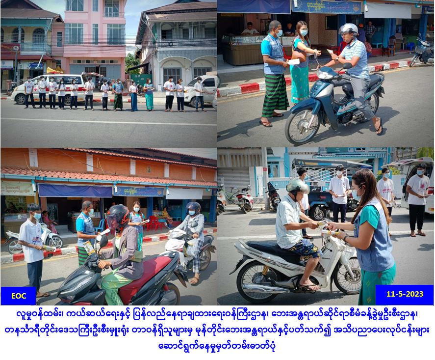 ဘားအံမြို့၊ မဲဘောင်ဈေး၊ သီရိဈေး၊ အမှတ် (၁) စံပြဈေးနှင့် မြို့မဈေးကြီးတို့၌ မုန်တိုင်းဘေးနှင့် လေပြင်းဘေးအသိပညာပေးလက်ကမ်းစာစောင်များ ဖြန့်ဝေပေးမှုသတင်း