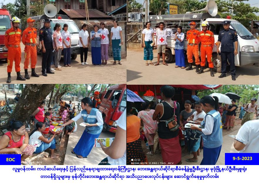လူမှုဝန်ထမ်း၊ ကယ်ဆယ်ရေးနှင့် ပြန်လည်နေရာချထားရေးဝန်ကြီးဌာန၊ ဘေးအန္တရာယ်ဆိုင်ရာစီမံခန့်ခွဲမှုဦးစီးဌာန၊ ကရင်ပြည်နယ်ဦးစီးမှူးရုံးနှင့် ဘားအံခရိုင်ဦးစီးမှူးရုံးတို့မှ တာဝန်ရှိသူများသည် မီးသတ်ဦးစီးဌာန၊ ပြန်ကြားရေးနှင့် ပြည်သူ့ဆက်ဆံရေးဦးစီးဌာန၊ မြို့နယ်စည်ပင်သာယာရေးအဖွဲ့တို့နှင့်ပူးပေါင်း၍ (၁၀-၅-၂၀၂၃)ရက်နေ့၊ (၀၇:၀၀) အချိန်မှ (၀၉:၃၀)နာရီအချိန်အထိ ဘားအံမြို့၊ မဲဘောင်ဈေး၊ သီရိဈေး၊ အမှတ်(၁)စံပြဈေးနှင့် မြို့မ ဈေးကြီးတို့တွင် မုန်တိုင်းဘေးနှင့် လေပြင်းဘေးအသိပညာပေးလက်ကမ်းစာစောင် ဖြန့်ဝေပေးခြင်းများ ဆောင်ရွက်ခဲ့ပါကြောင်း သတင်းရရှိပါသည်။ Source: ကရင်ပြည်နယ်ဦးစီးမှူးရုံး၊ ဘားအံပြည်နယ်ဦးစီးမှူးရုံး (ဘစမ) #ar #kyn_may2023