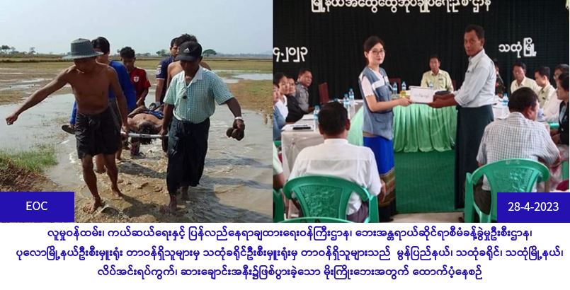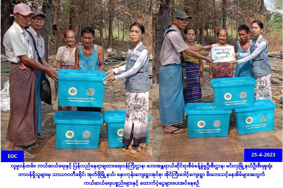 လူမှုဝန်ထမ်း၊ ကယ်ဆယ်ရေးနှင့် ပြန်လည်နေရာချထားရေးဝန်ကြီးဌာန၊ ဘေးအန္တရာယ်ဆိုင်ရာစီမံခန့်ခွဲမှုဦးစီးဌာန၊ မင်းလှမြို့နယ်ဦးစီးမှူးရုံးမှ တာဝန်ရှိသူများသည် သာယာဝတီခရိုင်၊ အုတ်ဖိုမြို့နယ်၊ နှောကုန်းကျေးရွာအုပ်စု၊ အိုင်ကြီးဒေါင့်ကျေးရွာ၌ (၁၉-၄-၂၀၂၃) ရက်နေ့၊ (၀၀း၄၇) နာရီအချိန်တွင် ဖြစ်ပွားခဲ့သောမီးဘေးကြောင့် ဘေးသင့်ပျက်စီးလူနေအိမ် (၃)လုံးအတွက် အိမ်ဆောက်ပစ္စည်းဖိုးထောက်ပံ့ငွေ (၅၀၀,၀၀၀/-)ကျပ်၊ လူဦးရေ (၁၃) ဦးအတွက် ဆန်ရိက္ခာဖိုးထောက်ပံ့ငွေ (၇)ရက်စာ(၂၇,၃၀၀/-)ကျပ်၊ စုစုပေါင်းထောက်ပံ့ငွေ (၅၂၇,၃၀ဝ/-)ကျပ်နှင့် အိမ်ထောင်စု(၃)စုအတွက် လေးထောင့်ပလပ်စတစ်ပုံးအပါ ကယ်ဆယ်ရေးပစ္စည်း(၁၇)မျိုးပါ(၃)ပုံးနှင့် စက္ကူ ကတ္ထူပုံး (၃)ပုံးတို့အား (၂၅-၄-၂၀၂၃)ရက်နေ့၊ (၁၂:၀၀) နာရီအချိန်တွင် တာဝန်ရှိသူများနှင့်အတူသွားရောက်၍ ဘေးသင့်ပြည်သူများ လက်ဝယ်အရောက် သွားရောက်ထောက်ပံ့ပေးအပ်ခဲ့ကြောင်း သတင်းရရှိပါသည်။ … Read more