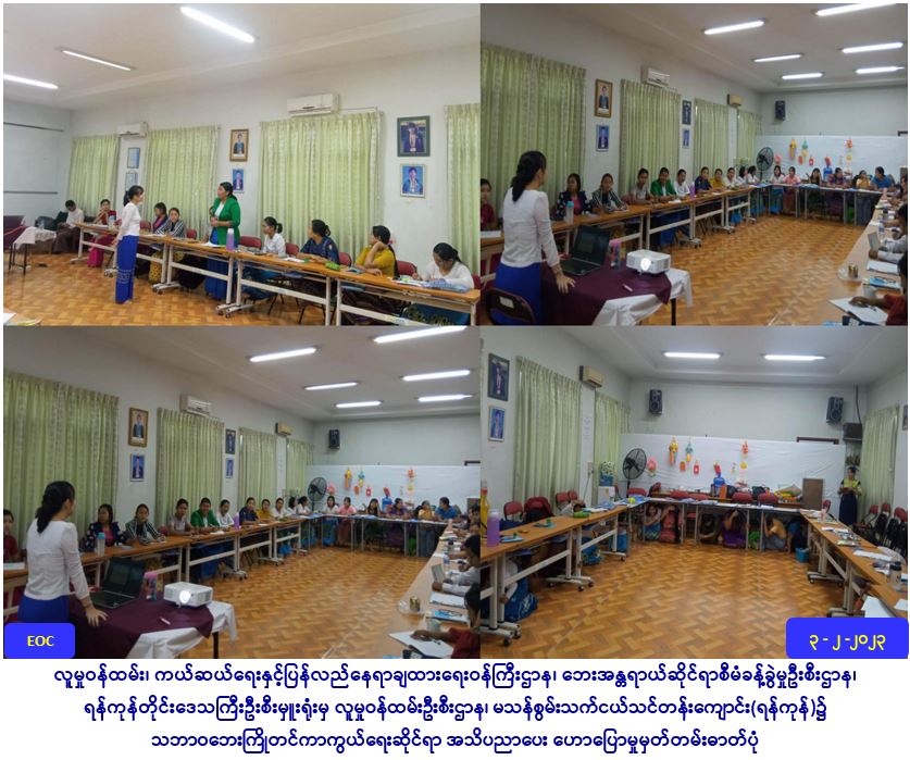 လူမှုဝန်ထမ်း၊ ကယ်ဆယ်ရေးနှင့်ပြန်လည်နေရာချထားရေးဝန်ကြီးဌာန၊ ဘေးအန္တရာယ်ဆိုင်ရာစီမံခန့်ခွဲမှု ဦးစီးဌာန၊ ရန်ကုန်တိုင်းဒေသကြီးဦးစီးမှူးရုံးမှ တာဝန်ရှိသူများသည် (၃-၂-၂၀၂၃) ရက်နေ့ (၀၉:၃၀) နာရီမှ (၁၂:၀၀) အချိန်အထိ လူမှုဝန်ထမ်းဦးစီးဌာန၊ မသန်စွမ်းသက်ငယ်သင်တန်းကျောင်း(ရန်ကုန်)မှ ဖွင့်လှစ် သော မသန်စွမ်းကလေးများ လေ့ကျင့်သင်ကြားပေးသော ဌာနတွင်း ဆရာ၊ ဆရာမများသင်တန်း”၌ သင်တန်းသား/သင်တန်းသူ စုစုပေါင်း (၃၀) ဦးတို့အား “သဘာဝဘေးကြိုတင်ကာကွယ်ရေးဆိုင်ရာ အသိပညာပေး ဟောပြောဆွေးနွေးပေးခဲ့ပါကြောင်း သတင်းရရှိပါသည်။ #ar #yan_feb_2023 Source: ရန်ကုန်တိုင်းဒေသကြီးဦးစီးမှူးရုံး (ဘစမ)